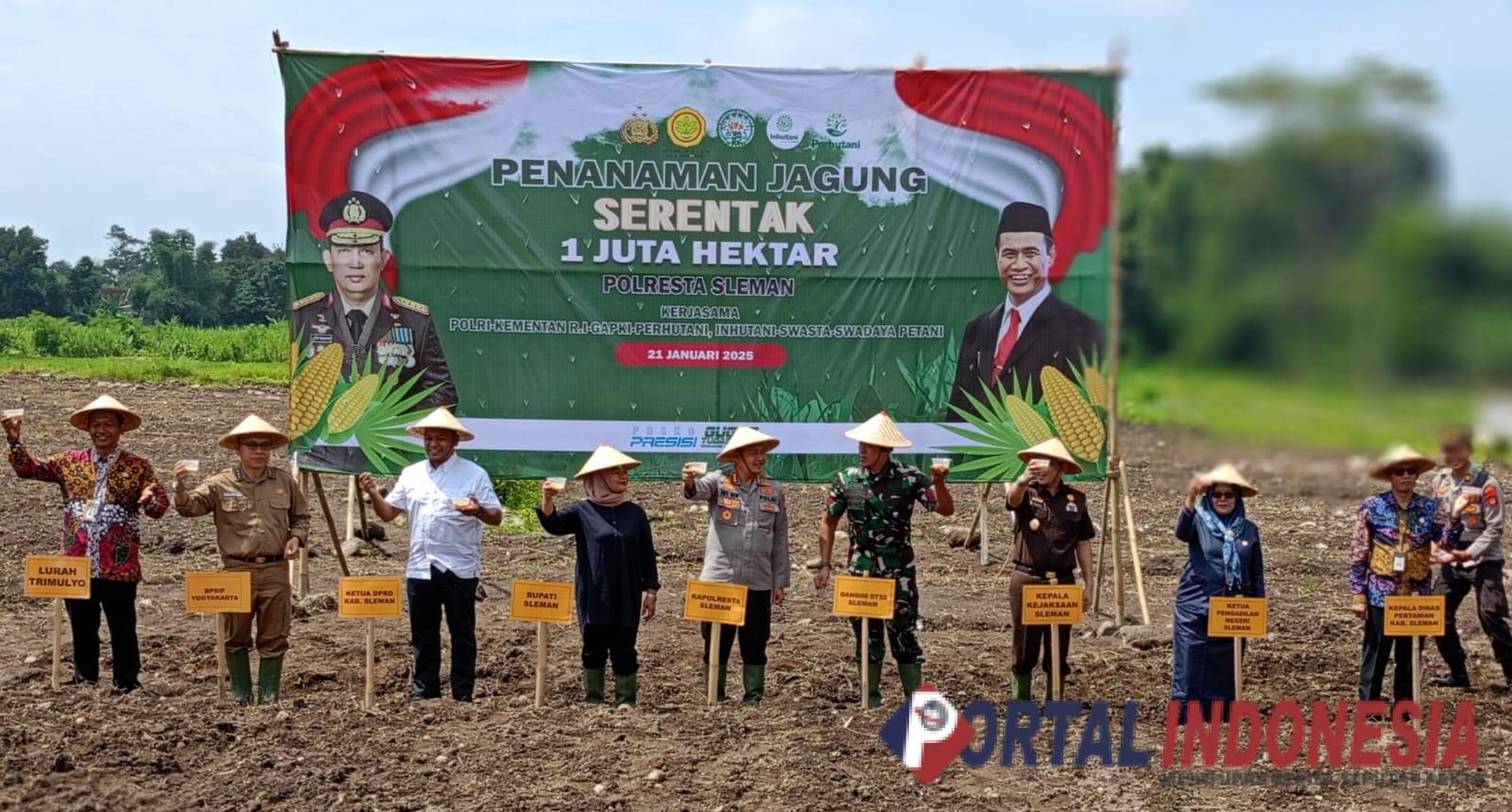 SLEMAN – Mensukseskan program menanam jagung serentak pada lahan sejuta hektar yang diinisiasi Polri bekerjasama dengan Kementrian Pertanian nasional, Polresta Sleman melaksanakan kegiatan menanam jagung di lahan tidur wilayah Kalurahan Trimulyo, Kapanewon Sleman, Kabupaten Sleman. Kegiatan ini juga untuk mendukung program swasembada pangan nasional.