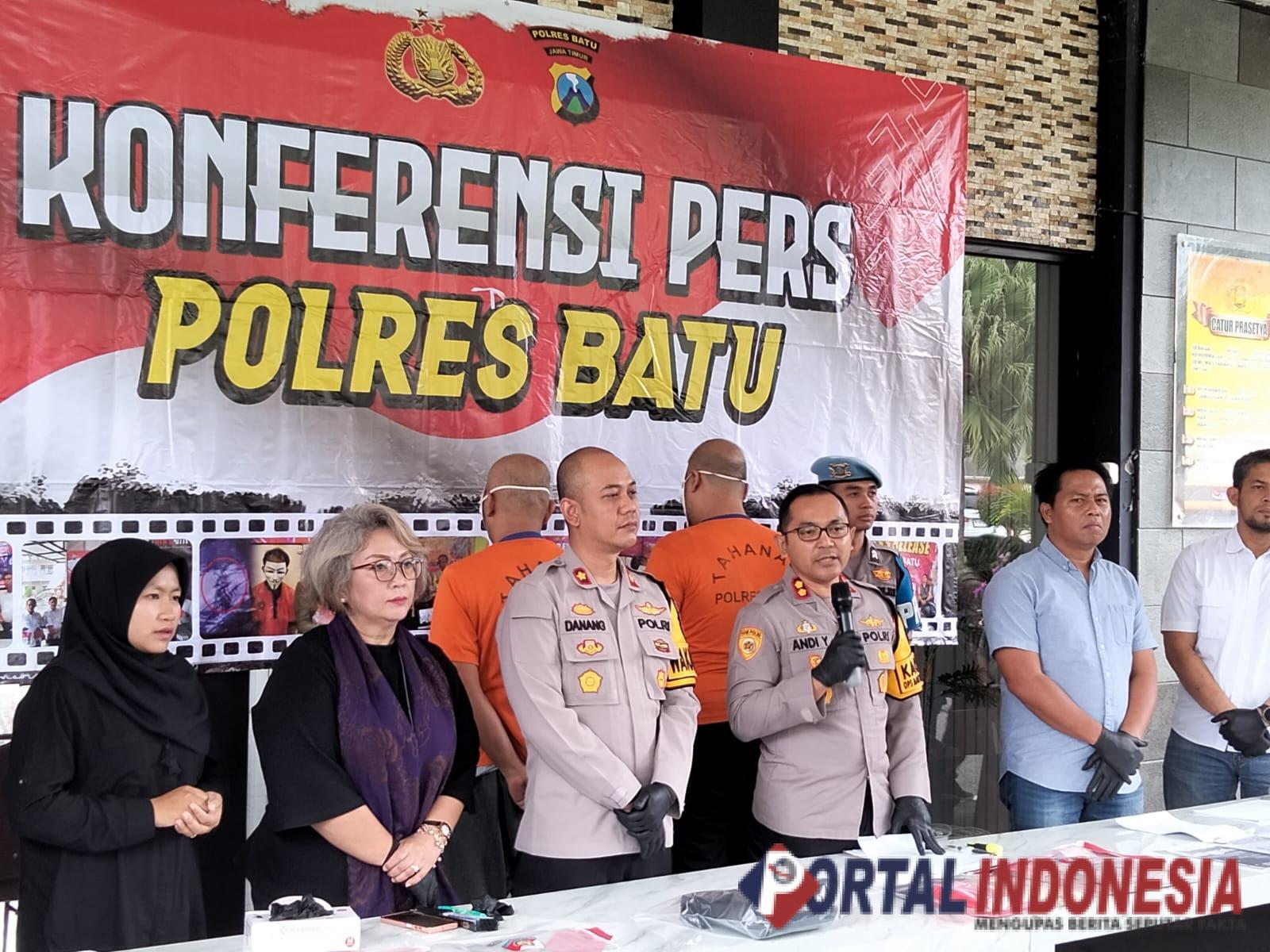 Kapolres Batu, AKBP Andi Yudha Pranata, didampingi Wakapolres Kompol Danang Yudanto serta Kasatreskrim AKP Rudi Kuswoyo, mengungkap kasus ini dalam konferensi pers pagi ini.
