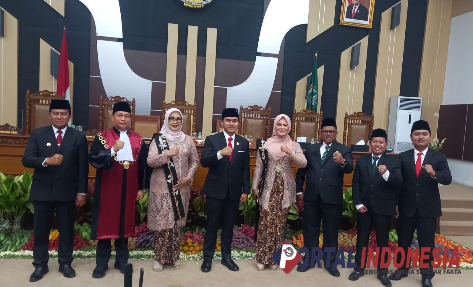 Foto bersana, para pimpinan terpilih usai prosesi atau pelaksanaan rapat paripurna dengan agenda pengambilan sumpah/janji