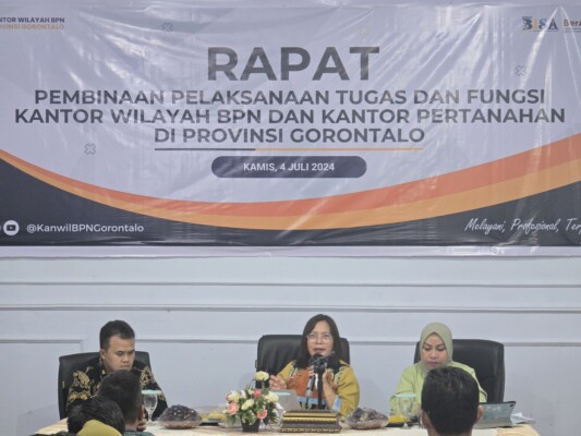 GORONTALO — Kementerian Agraria dan Tata Ruang/Badan Pertanahan Nasional (ATR/BPN) menyelenggarakan kegiatan Evaluasi dan Pembinaan terhadap Kantor Wilayah (Kanwil) BPN Provinsi Gorontalo, pada Kamis (04/07/2024). Evaluasi dilakukan terkait program-program strategis Kementerian ATR/BPN di Provinsi Gorontalo.