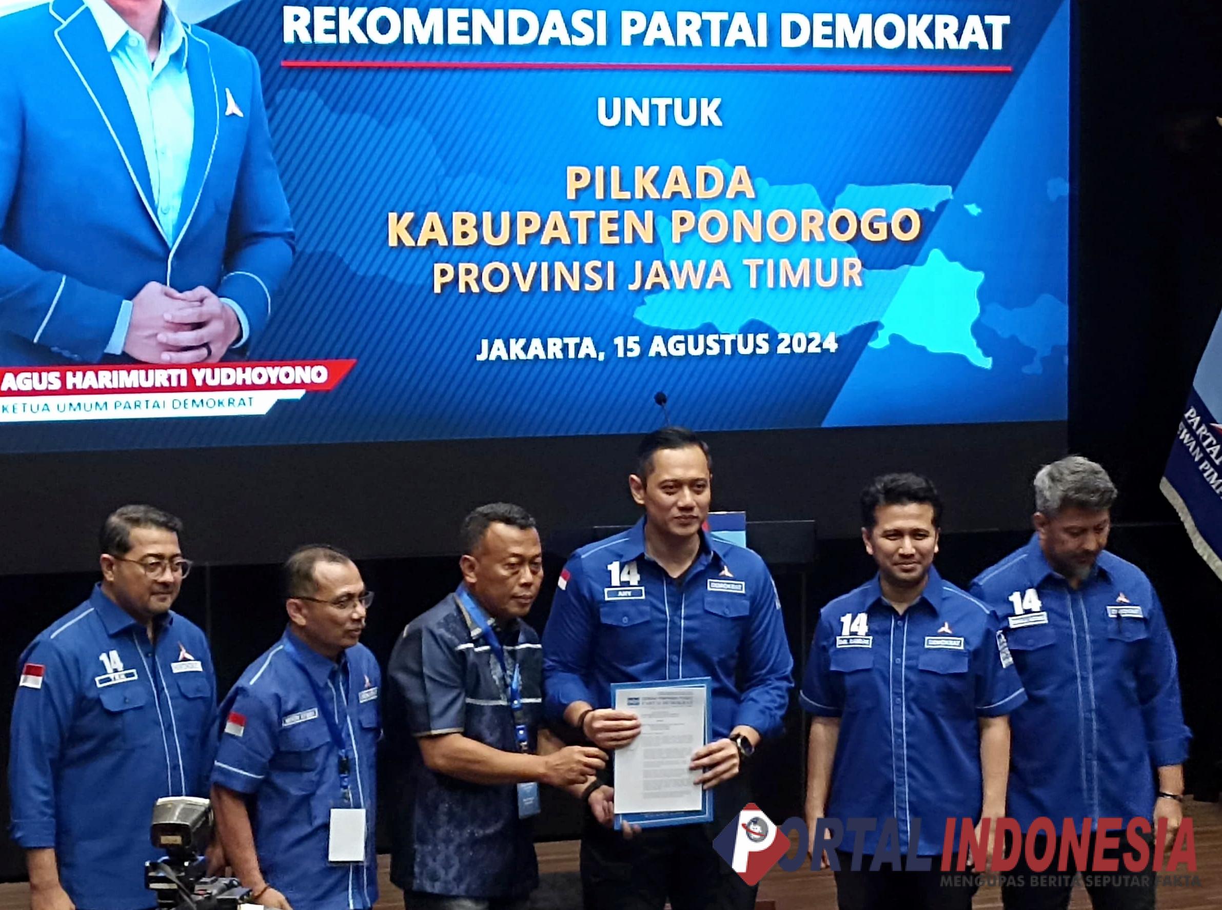 AHY (sapaan akrabnya) menambahkan, keputusan (rekom) ini menegaskan jika partai Demokrat mendukung penuh pasangan Sugiri-Lisdyarita dalam upaya memimpin dan melanjutkan pembangunan di Kabupaten Ponorogo.