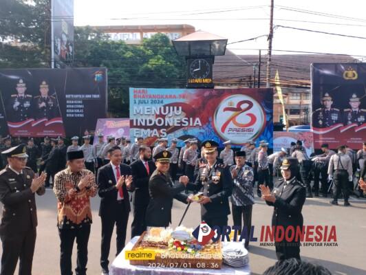 KOTA MALANG – Puncak peringatan Hari Bhayangkara Ke-78Th ditandai dengan upacara yang dilangsungkan di halaman Polresta Malang Kota. Selain diikuti oleh seluruh jajaran, upacara tersebut juga dihadiri oleh Forkopimda. Senin (01/07/2024)