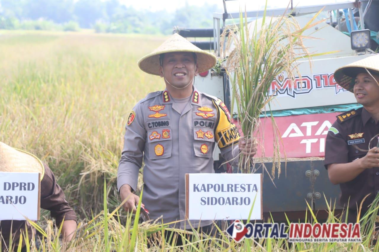 Wakil Bupati Sidoarjo Mimik Idayana, Kapolresta Kombes Pol. Christian Tobing, serta Dandim 0816 Letkol Inf. Dedyk Wahyu Widodo hadir langsung dan ikut memanen padi di lahan seluas hampir 10 hektar milik petani setempat.