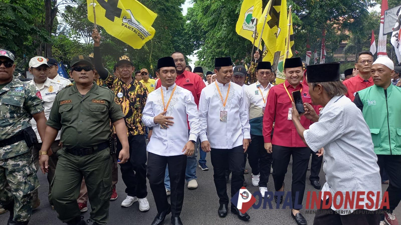 Usai melakukan ziarah kubur, Paslon ANUGRAH diarak oleh ratusan masa sembari mengendarai kendaraan bermotor dengan diiringi lantunan Shalawat hadroh menuju ke kantor KPU. Dan setibanya di pintu gerbang KPU, tampak Paslon ANUGRAH disambut oleh komisioner KPU disertai dengan pengalungan kain syal berlogo KPU.