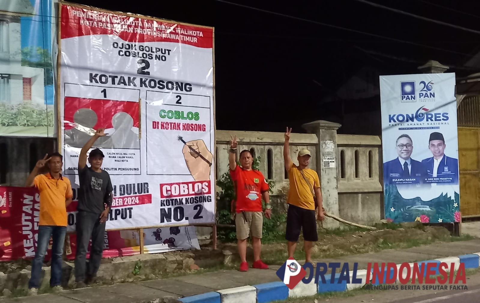 “Kita sudah berjanji, titik-titik yang strategis seperti ini akan kita pasang (banner) seperti di perempatan Purutrejo, Kebonagung, Slagah termasuk Dungwolu dan perempatan Kumala. Ini gerakan moral, gerakan jiwa, dan bukan hanya omong kosong saja. Pokoknya akan kita buktikan, bahwa kotak kosong akan menang”, tegasnya.