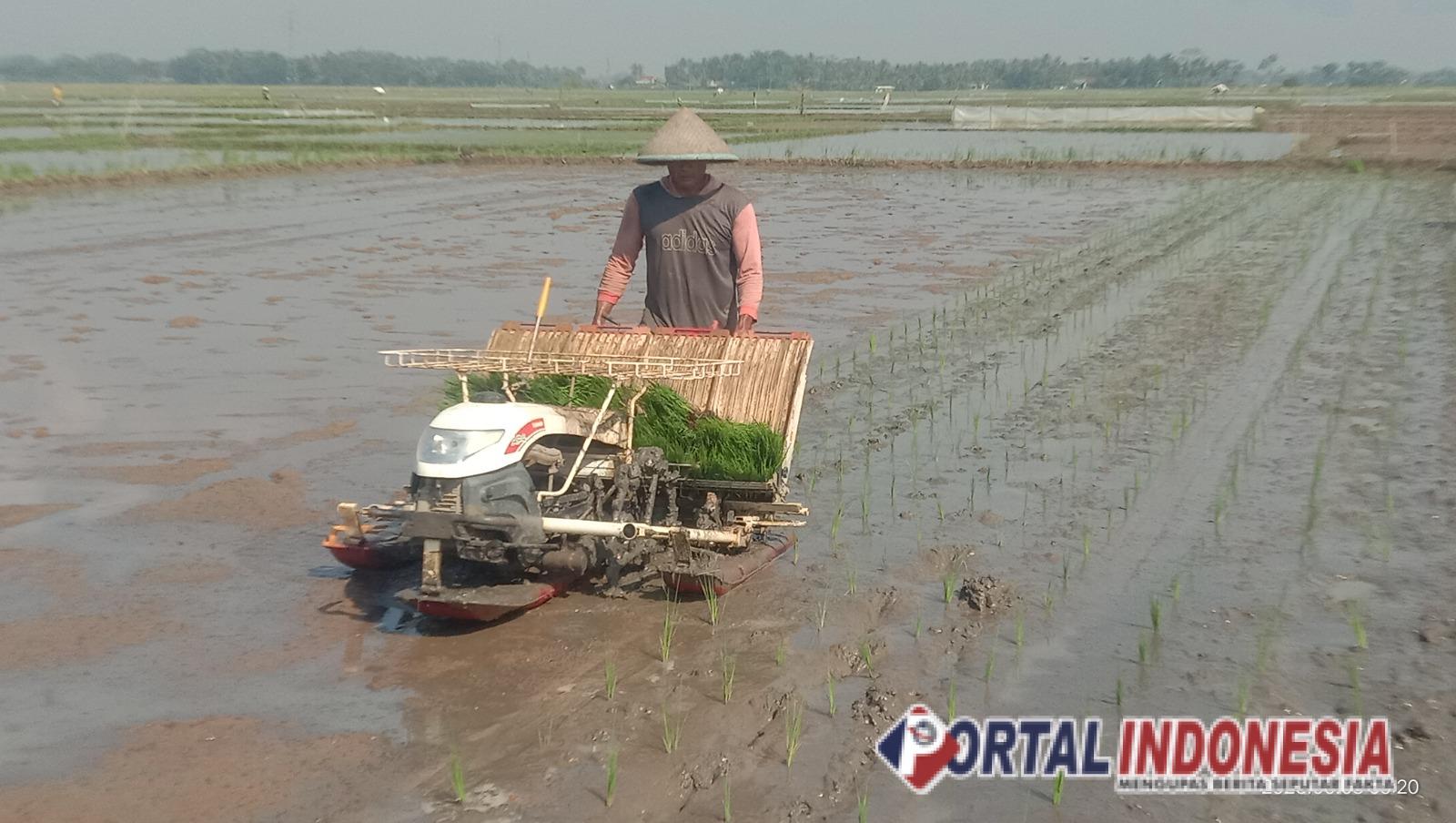 Petani di Desa Kebarongan, Kecamatan Kemranjen, Banyumas menggunakan mesin Rice Transplanter (Portal Indonesia/Sugi)