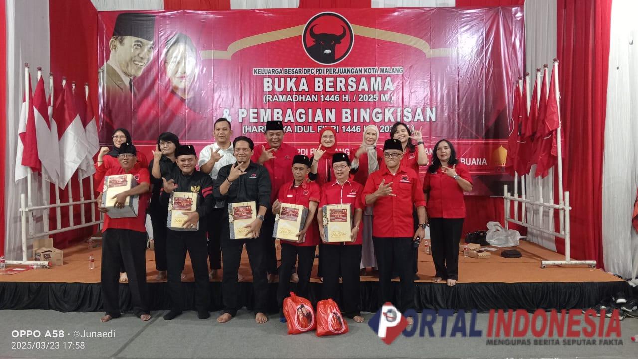 KOTA MALANG – Pada hari ke-23 bulan Ramadhan, Dewan Pimpinan Cabang (DPC) Partai Demokrasi Indonesia Perjuangan (PDI-P) Kota Malang mengajak pengurus Pimpinan Anak Cabang (PAC), Ranting, Anak Ranting, sayap partai, serta Satgas untuk berbuka puasa (Bukber) bersama sekaligus membagikan bingkisan Idul Fitri.