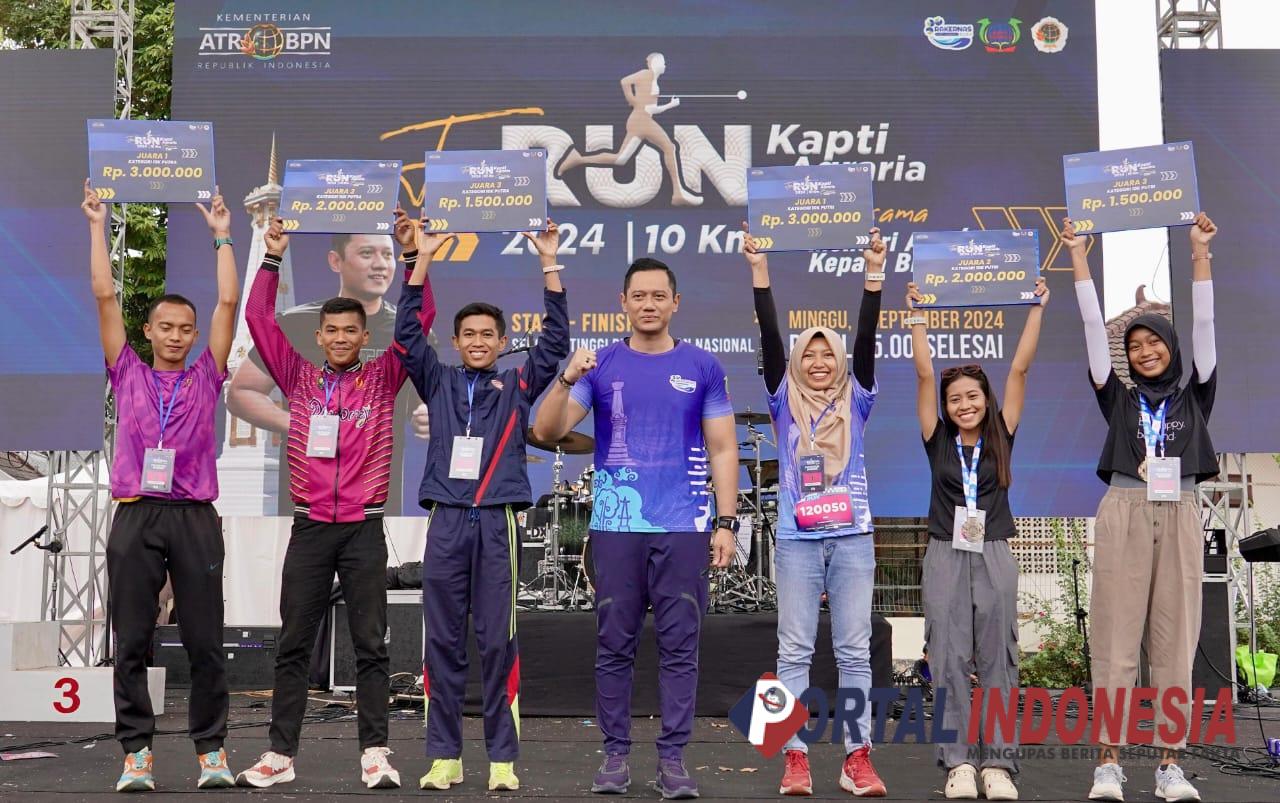 Sementara itu, Direktur Jenderal Penetapan Hak dan Pendaftaran Tanah, Asnaedi menyerahkan hadiah kepada pemenang Fun Run Kategori 5K Putra dan Putri.