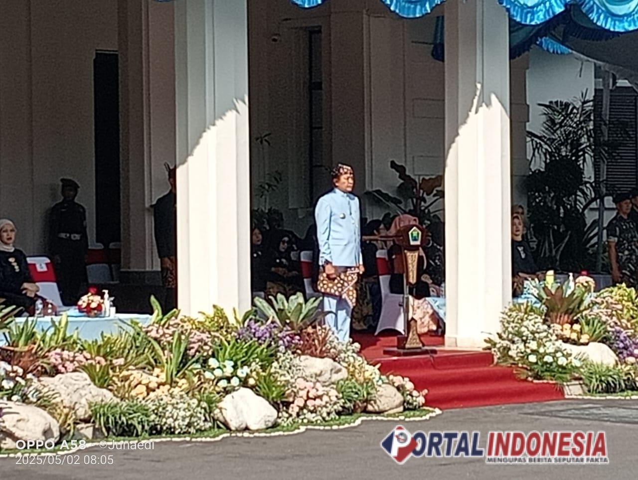 KOTA MALANG – Upacara peringatan Hari Pendidikan Nasional (Hardiknas) 2025 yang mengusung tema “Partisipasi Semesta Wujudkan Pendidikan Bermutu Untuk Semua” digelar di halaman depan Balai Kota Malang dan diikuti ratusan guru serta siswa, Jumat (02/05/2025).