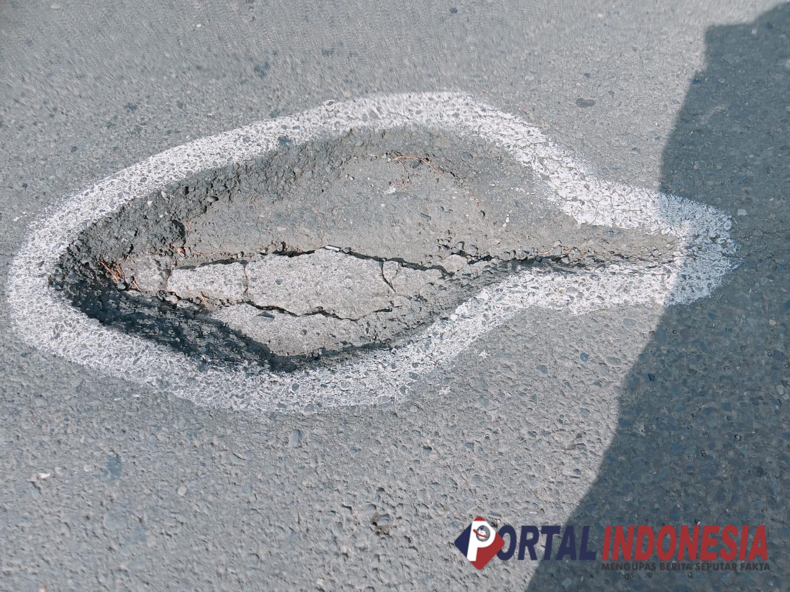 Jalan yang berlubang sudah ditandai cat putih, Namun hingga berita ini diturunkan belum ada upaya perbaikan dari DPU Provinsi Jateng.
