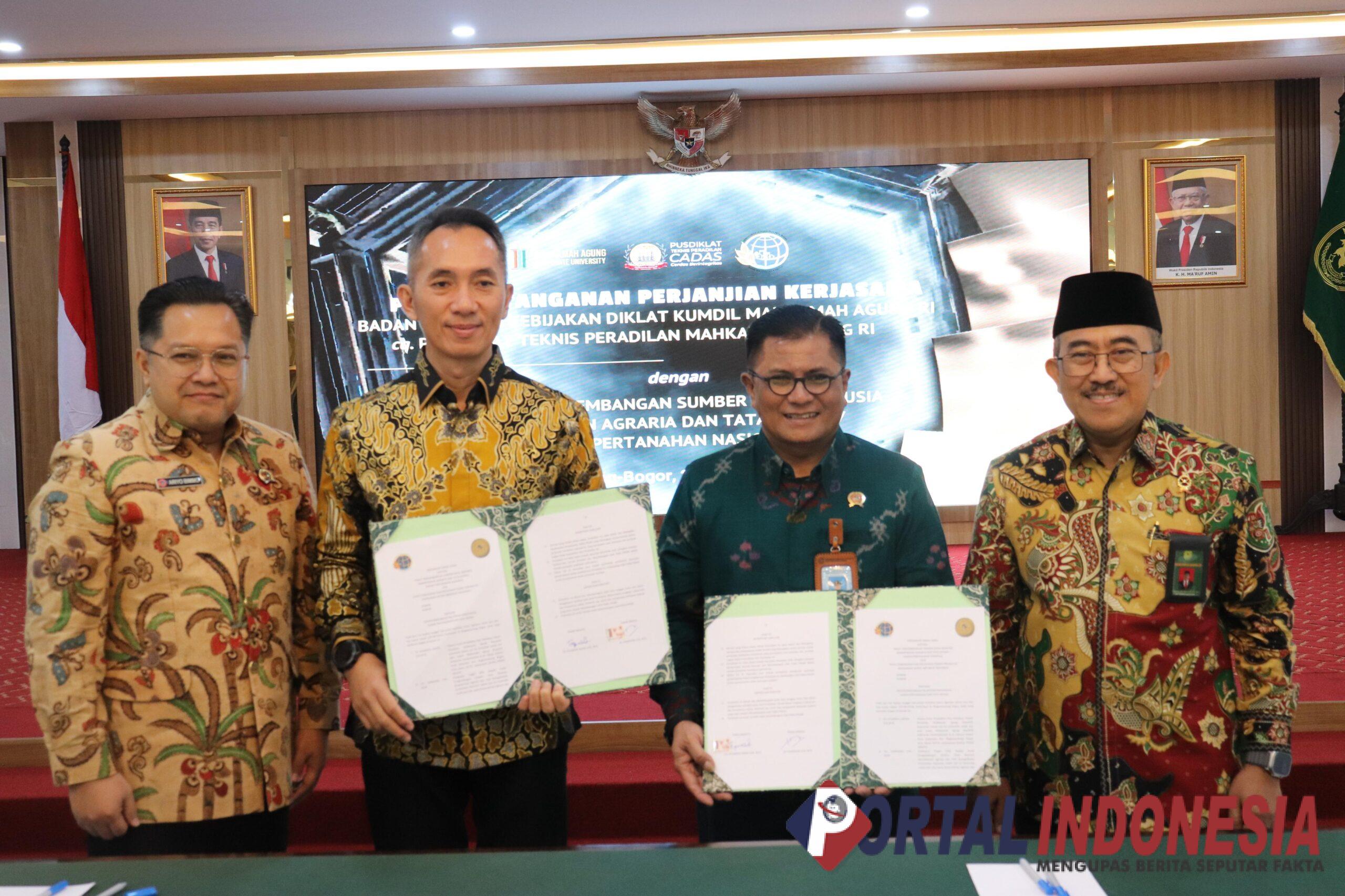 Dalam penandatanganan perjanjian kerja sama, ditandatangani oleh Plt. Kepala PPSDM Kementerian ATR/BPN, Hardian dan Kepala Pusat Pendidikan dan Pelatihan Teknis Peradilan MA, Syamsul Arief.