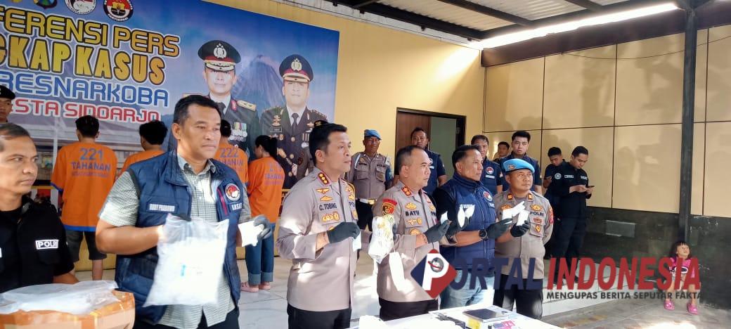 Dalam konferensi pers di Mapolresta Sidoarjo, Kapolresta Kombes Pol Christian Tobing menjelaskan bahwa operasi ini mengamankan empat tersangka, yaitu AC (34) dan MM (34) dari Desa Kalanganyar, serta DSB (28) dari Desa Betro, dan NNA (25) dari Desa Kepatihan, Jombang. Barang bukti berupa 1.500 gram sabu, 240 butir ekstasi, bungkus teh Cina berisi sabu, wadah microtube, handphone, dan alat pendukung lainnya ditemukan bersama para tersangka.