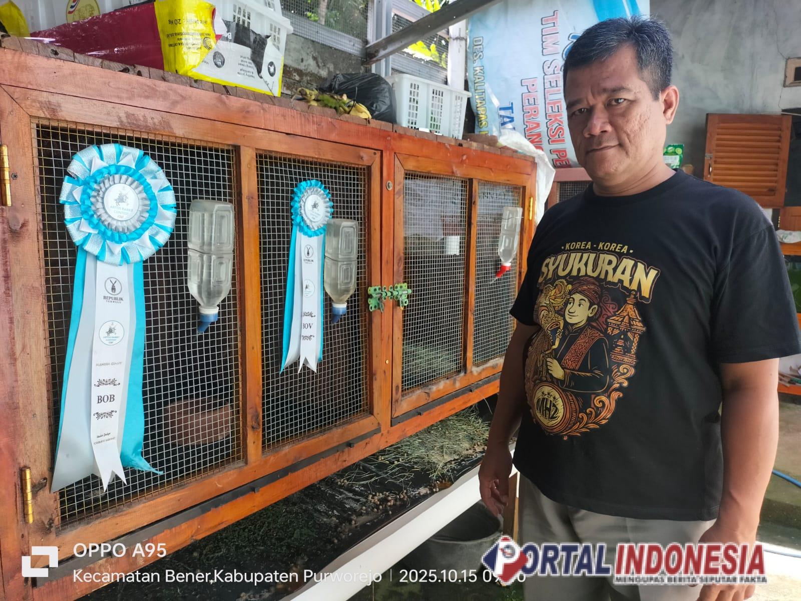 PURWOREJO – Menjadi kepala desa tak lantas membuat Kepala Desa Kalitapas, Kecamatan Bener, berhenti berkarya di luar urusan pemerintahan. Di sela kesibukannya melayani masyarakat, sang kades justru menekuni hobi unik yang berbuah prestasi dan penghasilan: beternak truwelu (kelinci) jenis Flemish Giant.