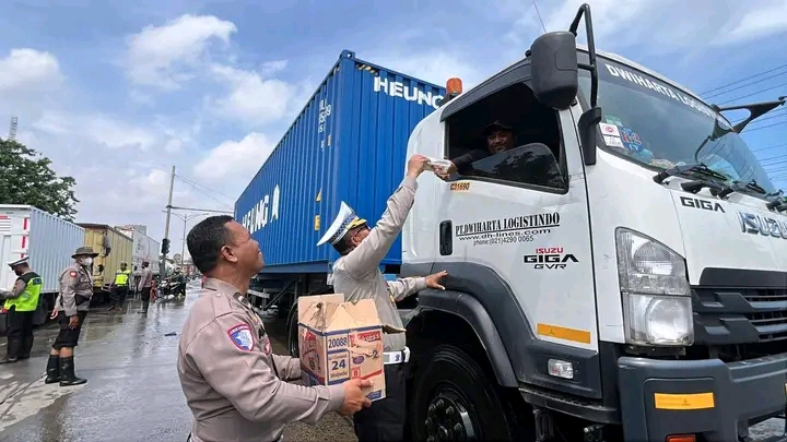 Di balik situasi sulit itu, tampak pula sisi kemanusiaan yang menghangatkan. Di sela kesibukan mengatur arus lalu lintas dan membantu warga, Kasat Lantas bersama jajarannya menggelar kegiatan Jumat Berkah dengan membagikan makanan dan minuman kepada para sopir truk yang telah berjam-jam terjebak macet di kawasan Kaligawe.