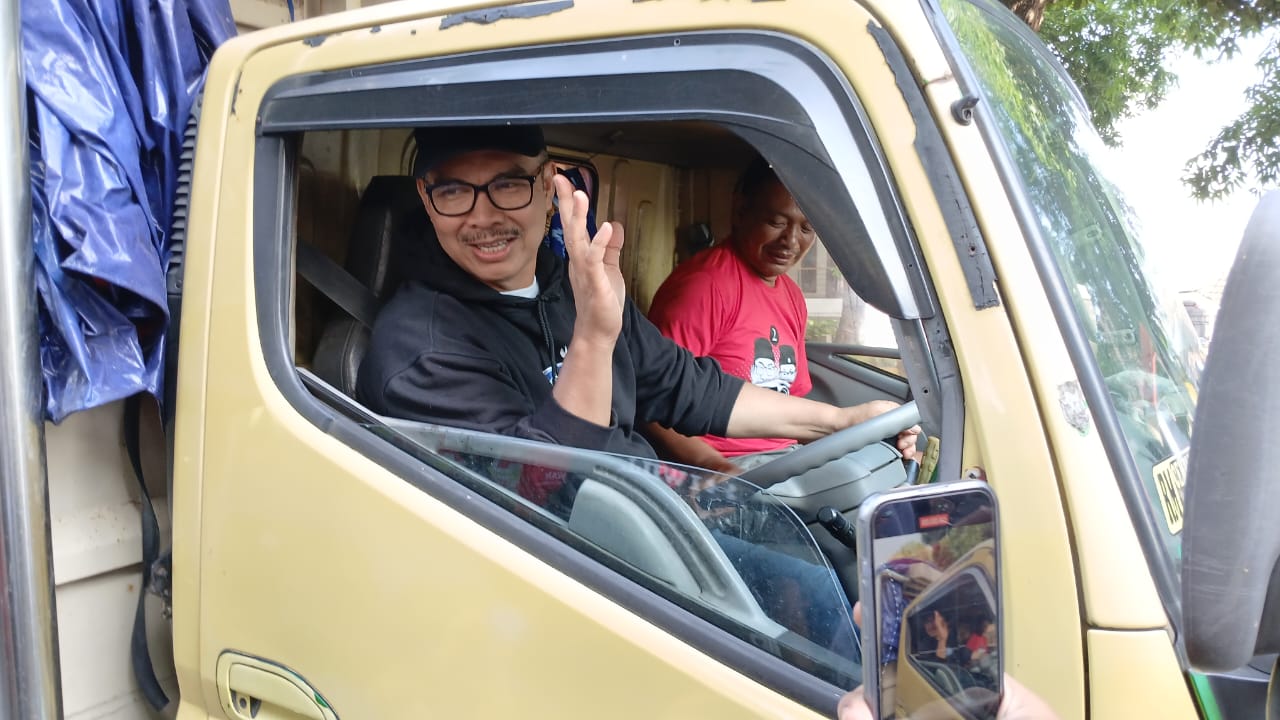 YOGYAKARTA – Mantan Kepala BKKBN dr Hasto Wardoyo sopiri sendiri truk pengangkut sampah, saat kampanye akbar sebagai calon