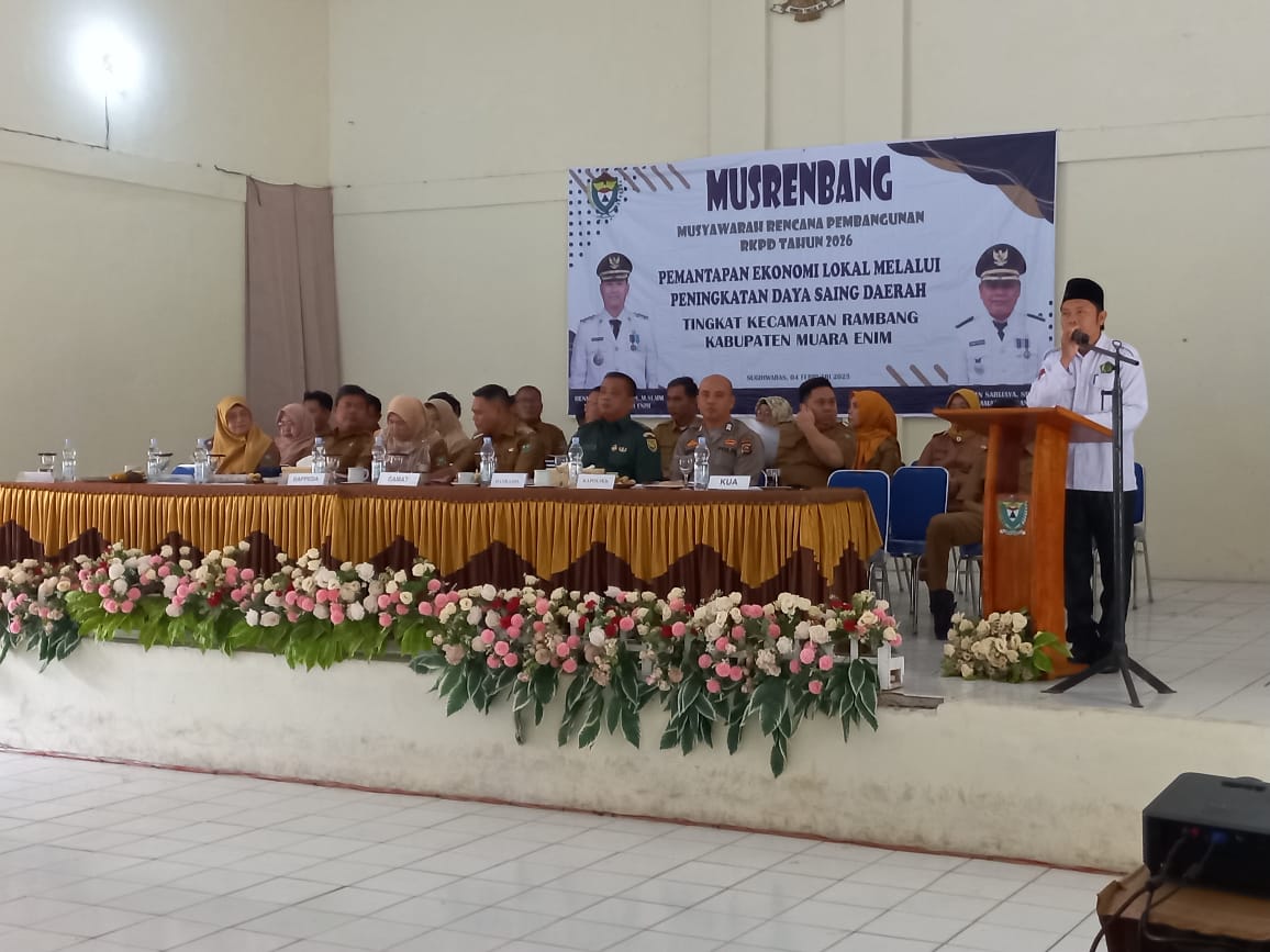Kapolres Muara Enim AKBP Jhoni Eka Putra, SH, SIK, MM, M.Si melalui Kapolsek Rambang IPTU Zulkarnain Afianata, ST, M.Si, MH mengatakan bahwa penyelenggaraan Musrenbang Tingkat Kecamatan Rambang Tahun 2025 sebagai rangkaian penyusunan RKPD Kabupaten Muara Enim Tahun 2026 dan merupakan tahapan lanjutan dari Musrenbang Tingkat Desa.