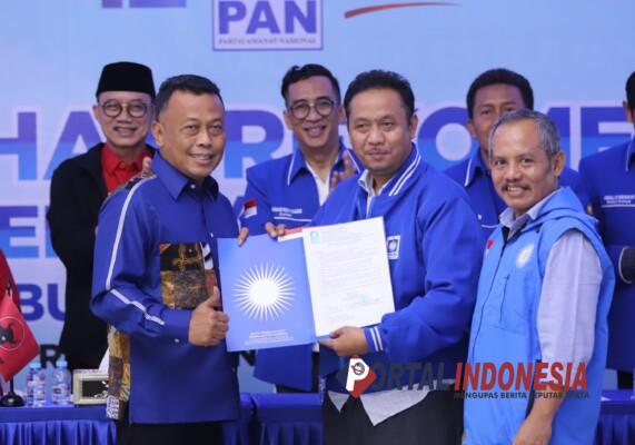 PONOROGO – Dewan Pimpinan Pusat Partai Amanat Nasional (DPP PAN) memberikan surat tugas calon Bupati (Cabup) kepada Sugiri Sancoko untuk macung lagi dalam Pemilihan Kepala Daerah (Pilkada) 2024 Ponorogo.