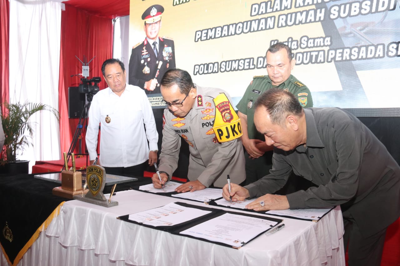 PALEMBANG — Kepala Kepolisian Daerah (Kapolda) Sumatera Selatan (Sumsel) , Irjen Pol Andi Rian Djajadi, SIK, MH bersama Pejabat Utama dan Dinas terkait melaksanakan kegiatan peletakan batu pertama Perumahan Bersubsidi untuk anggota Polri di Perumahan Duta Tanah Mas Kecamatan talang kelapa Kabupaten Banyuasin , Selasa, 4 Maret 2025.