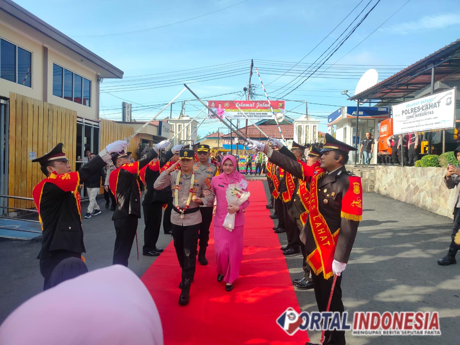 Sebelum memasuki Mako Polres Lahat, AKBP Novi Edyanto dan Ketua Bhayangkari Cabang Lahat, Ny. Noviarti Edyanto, disambut dengan Tarian Sekapur Sirih, tradisi khas Kabupaten Lahat yang melambangkan penghormatan bagi tamu kehormatan.