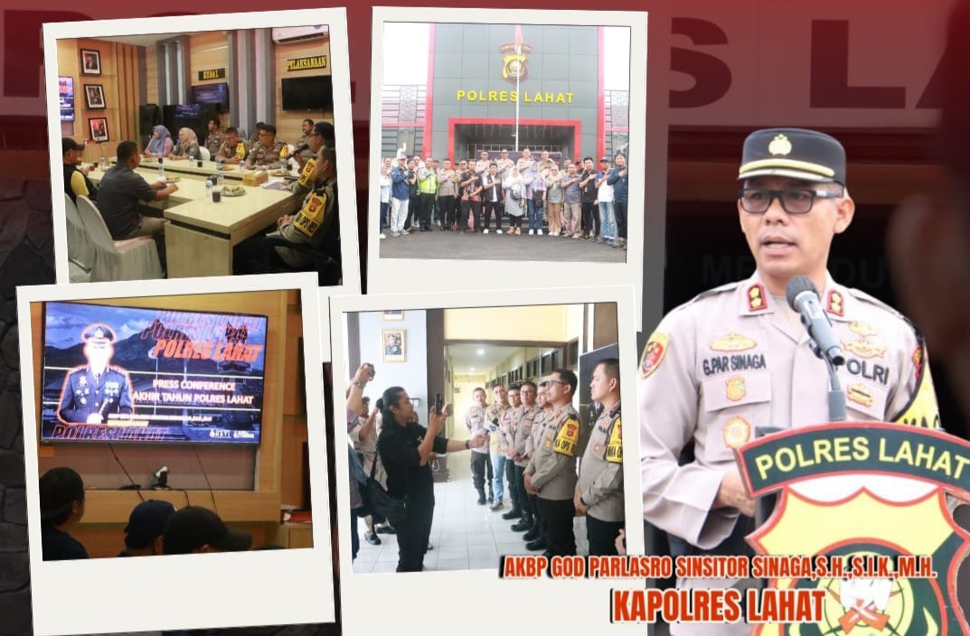 LAHAT — Menjelang penutup tahun 2024, Kapolres Lahat AKBP God Palastro S. Sinaga, SH, SiK, MH, bersama jajaran Polres Lahat mengundang awak media untuk menghadiri konferensi pers di Ruang Rudang Polres Lahat.