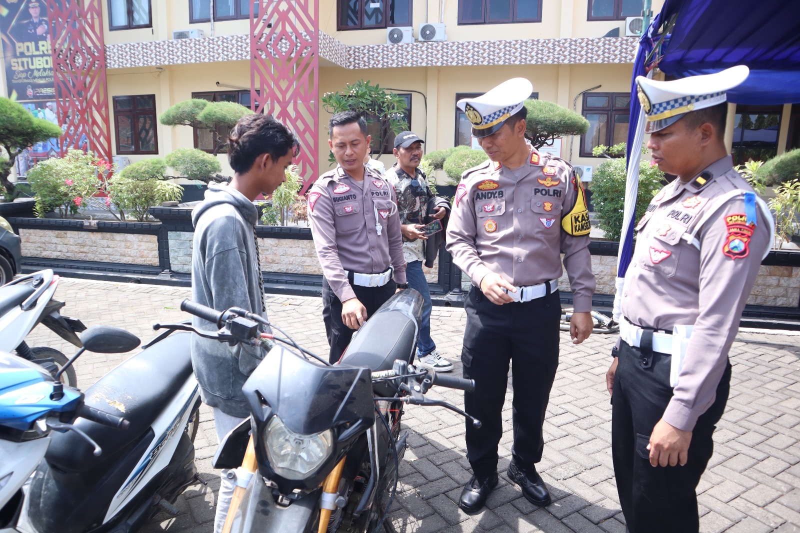 SITUBONDO – Kapolres Situbondo, AKBP Rezi Dharmawan, S.I.K., M.I.K., memberikan peringatan keras kepada puluhan remaja dan orang tua yang terlibat dalam aksi balap motor dan balap lari liar yang berhasil ditertibkan selama sepekan terakhir.