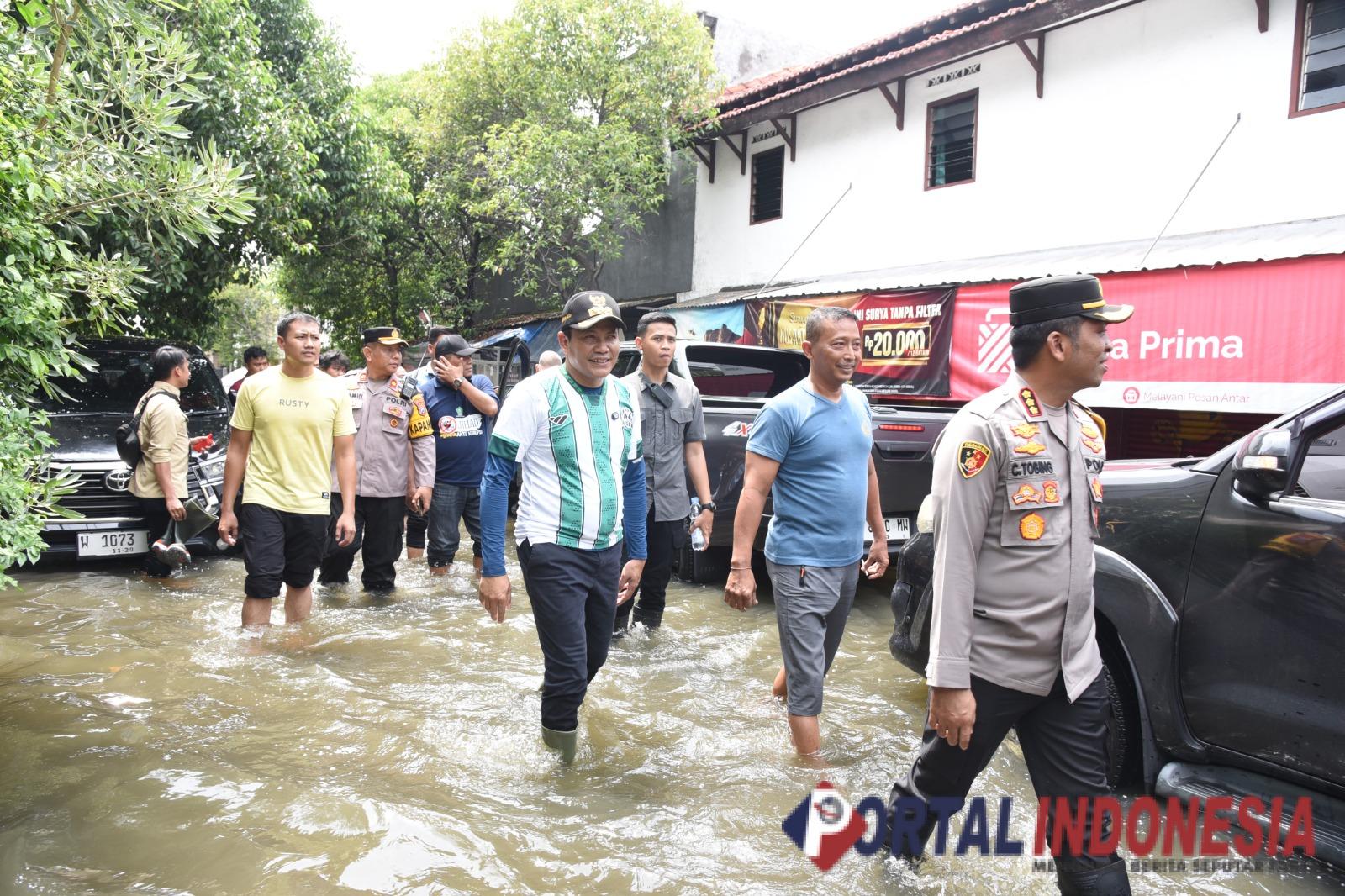 Usai apel, Kapolresta bersama Plt. Bupati dan Dandim melakukan inspeksi ke beberapa wilayah terdampak banjir, seperti Berbek, Pondok Tjandra, Tropodo, dan Pepelegi.