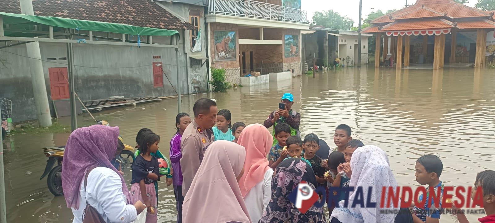 Kapolsek Krian Salurkan Bantuan dan Hiburan untuk Warga Terdampak Banjir di Barengkrajan
