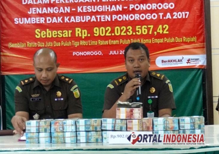 PONOROGO – Kejaksaan Negeri (Kejari) Ponorogo mengeksekusi uang pengganti pidana senilai kurang lebih Rp 902 juta menyoal kasus tindak pidana korupsi proyek peningkatan jalan.