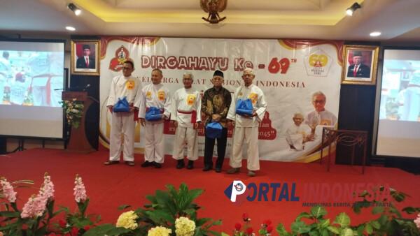 SIDOARJO — Keluarga Silat Nasional Indonesia (Kelatnas Indonesia) Perisai Diri merayakan Dirgahayu yang ke-69 dengan tema Satukan Tekad Keluarga Perisai Diri Membangun Generasi Berkarakter dan Berprestasi Menuju Indonesia Emas 2045 yang dikemas dengan acara hiburan menampilkan tarian Remo serta atraksi pencak silat dari perwakilan murid Perisai Diri di Hotel Elmi Surabaya, Sabtu (6/7/2024).