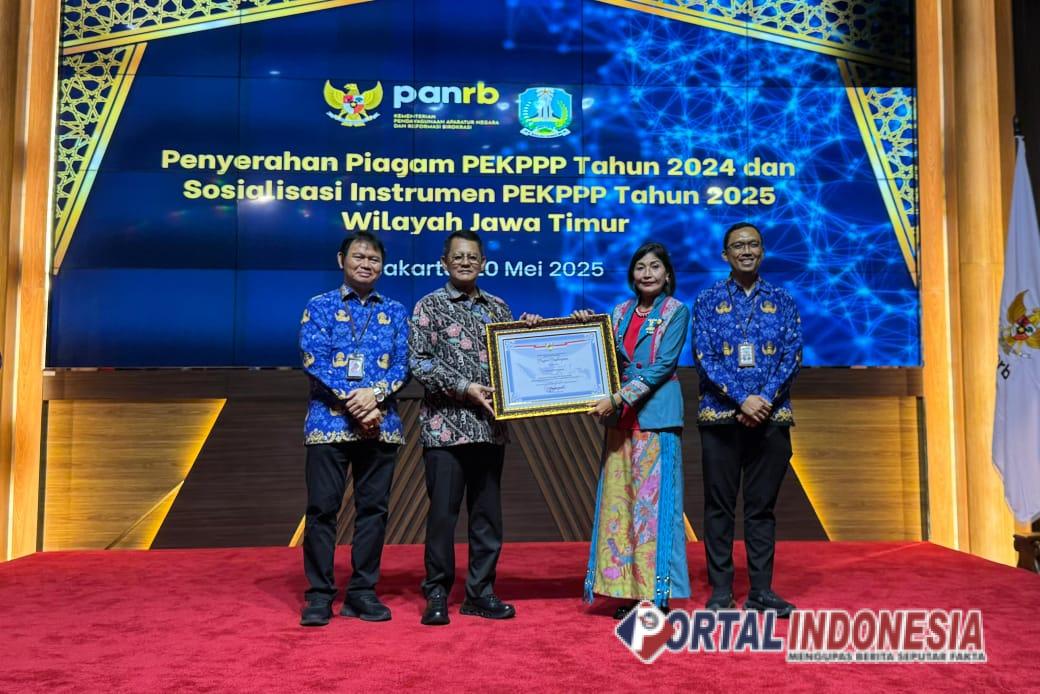 Asisten Pemerintahan dan Kesejahteraan Rakyat Setda Kota Malang Ida Ayu Made Wahyuni mewakili penerimaan penghargaan dari KEMENPANRB.