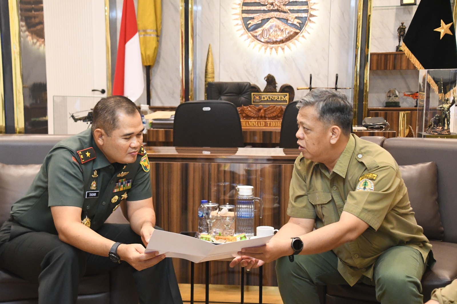 PALEMBANG — Danrem 044/Gapo Brigjen TNI Muhammad Thohir, S.Sos., M.M menerima kunjungan silaturahmi Kepala Balai BPSI LHK Palembang beserta staf, bertempat di Ruang Kerja Danrem 044/Gapo Jl. Jenderal Sudirman Km. 4 Kota Palembang, Senin (2/9/2024).