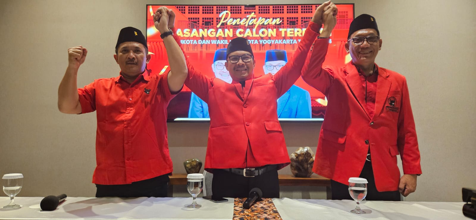 “Menetapkan Pasangan Calon Wali Kota dan Wakil Wali Kota Yogyakarta nomor urut 2 atas nama Saudara dr. Hasto Wardoyo, Sp.OG (K) dan Wawan Harmawan S.E., M.M. sebagai pasangan calon wali kota dan wakil wali kota terpilih dalam Pemilihan Wali Kota dan Wakil Wali Kota Yogyakarta Tahun 2024,” kata Harsya.