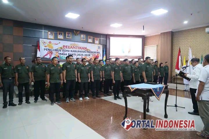 PRINGSEWU – Kepengurusan baru Komite Olahraga Nasional Indonesia (KONI) Kabupaten Pringsewu periode 2025–2029 resmi dilantik. Acara pelantikan digelar di Aula Utama Pemkab Pringsewu pada Sabtu (17/5/2025) dan dipimpin langsung oleh Ketua Harian KONI Provinsi Lampung, Amalsyah Tarmizi.