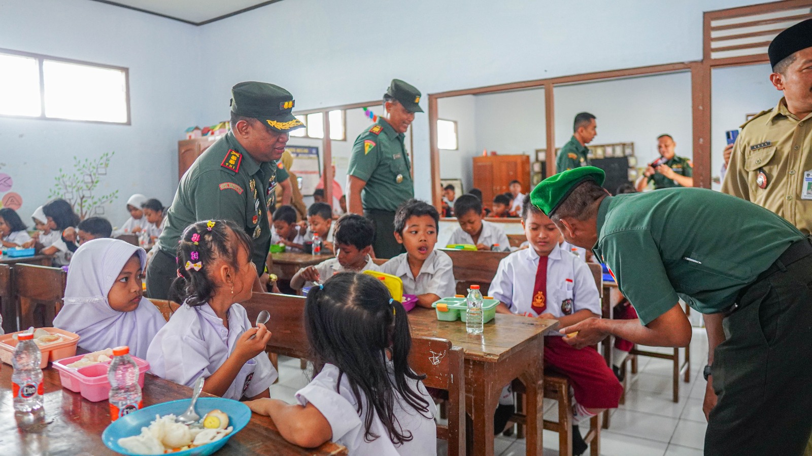 Kodim Purworejo Gelar Acara Makan Gratis di SDN Kledung Karangdalem