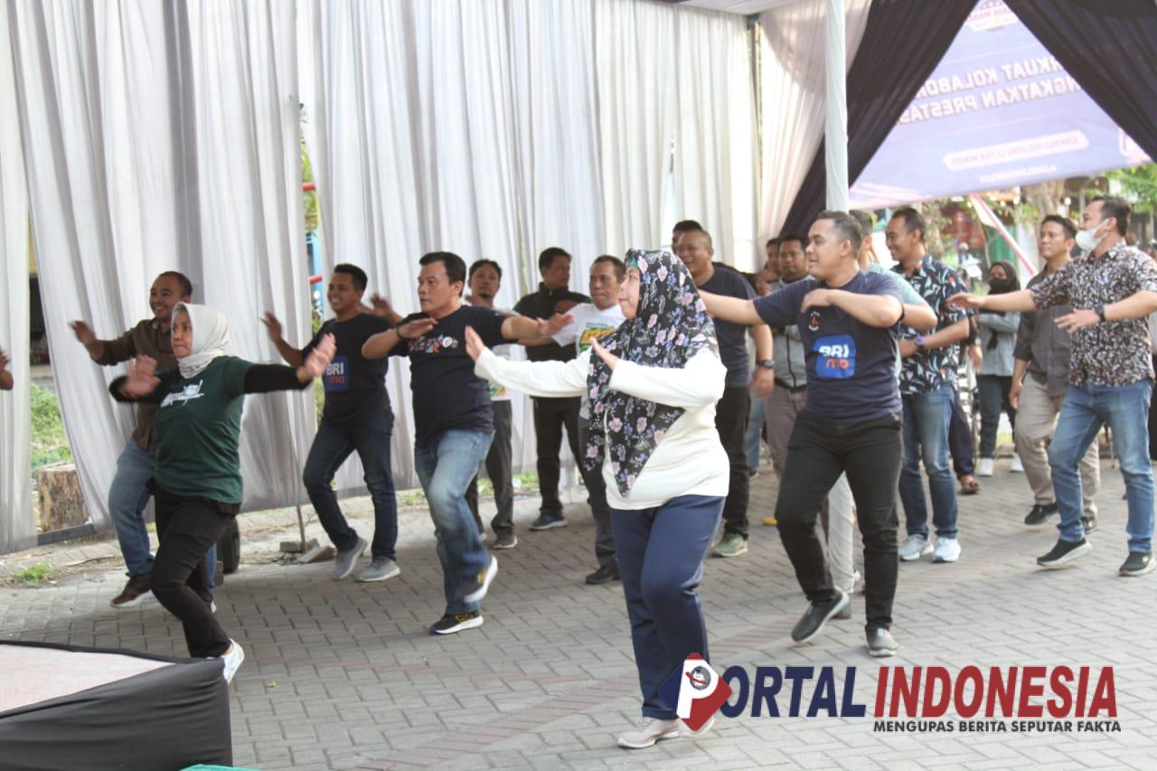 SIDOARJO — Tingkatkan Produktivitas Kinerja, BRI Kanca Krian kembali menggelar senam Bersama dan mini bazar Bersama Pegadaian-PNM.