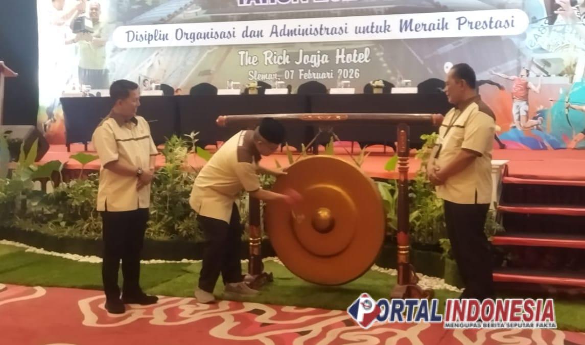 SLEMAN – Komite Olahraga Nasional Indonesia (KONI) Kabupaten Sleman menggelar Rapat Kerja Kabupaten (Rakerkab) Tahun 2026 di The Rich Jogja Hotel, Sleman, Sabtu (7/2/2026).