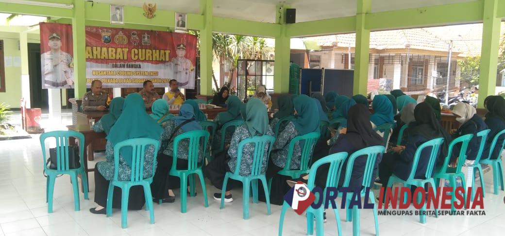 Dengan tema Sahabat Curhat, acara ini diadakan di berbagai desa, termasuk pada Sabtu (26/10/2024) di Balai Desa Terik, Krian. Hadir dalam kegiatan tersebut Kanit Binmas Polsek Krian, Iptu Edy Santoso, bersama Bhabinkamtibmas Desa Terik, Bripka Agung Winarno, serta puluhan ibu-ibu anggota PKK Desa Terik, Kader Kesehatan, bidan, dan tokoh masyarakat lainnya.