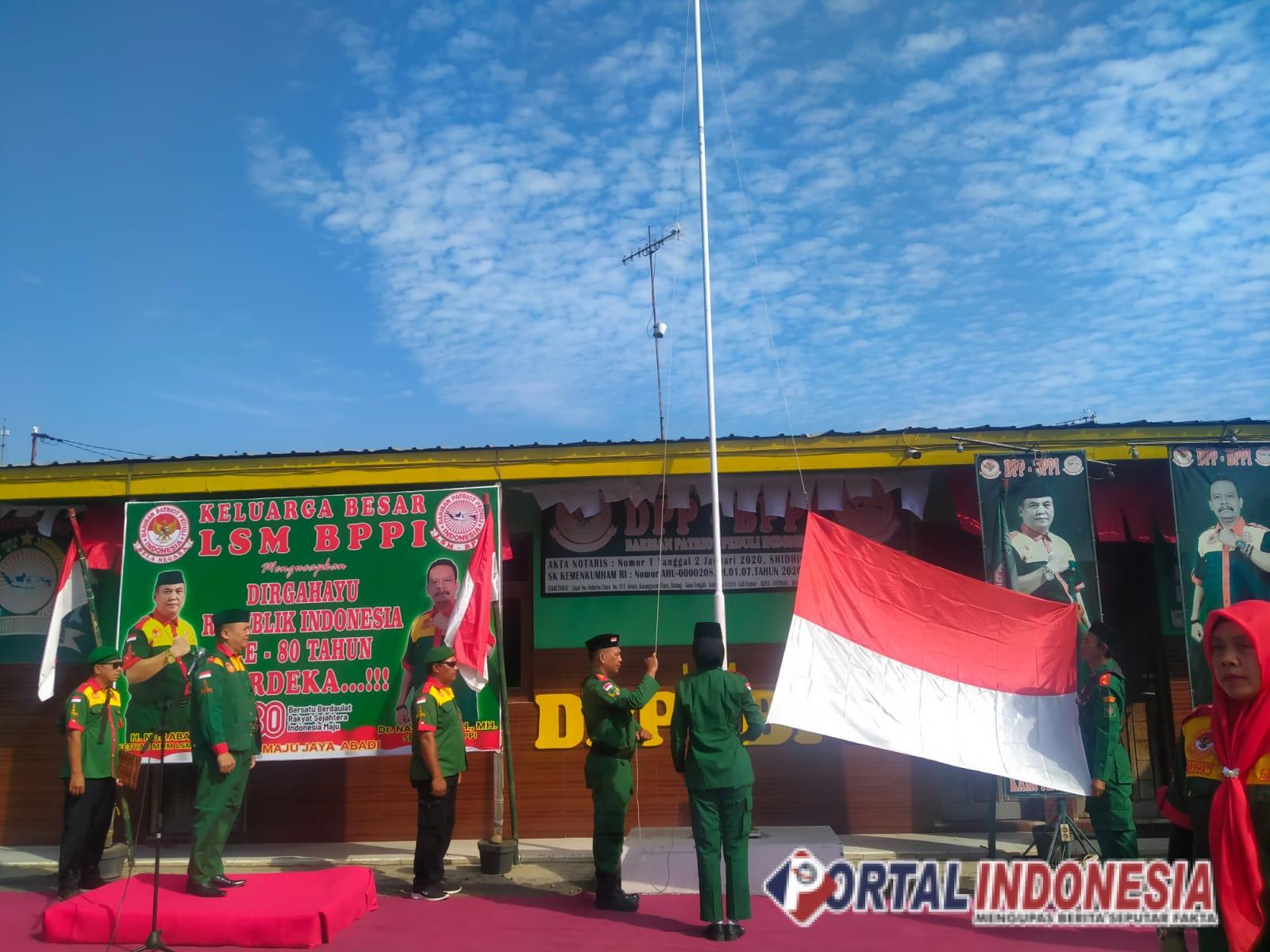 Ketua Umum LSM BPPI, Nur Abadi dalam Amanahnya mengucapkan puji Syukur kepada Allah SWT atas Rahmat dan Hidayahnya kita bisa melaksanakan Upacara HUT kemerdekaan RI ke 80 pada hari ini tanggal 17 Agustus 2025 dalam Keadaan sehat dan Bahagia. “BPPI sejak berdiri setiap 17 Agustus tiap tahunnya menggelar Upacara HUT RI walau dalam keadaan covid 19 pun LSM BPPI tetap menggelarnya,” ujarnya