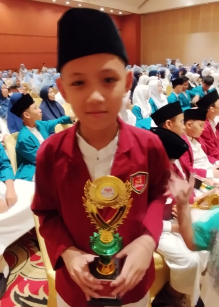 Dzaky membuktikan bahwa dia telah menghafal Alquran sebanyak 5 juz pada wisuda akbar sekolah dasar islam terpadu zam al muttaqin yang dilaksanakan di ballroom hotel Arya duta pada sabtu 19 Oktober 2024 yang lalu.