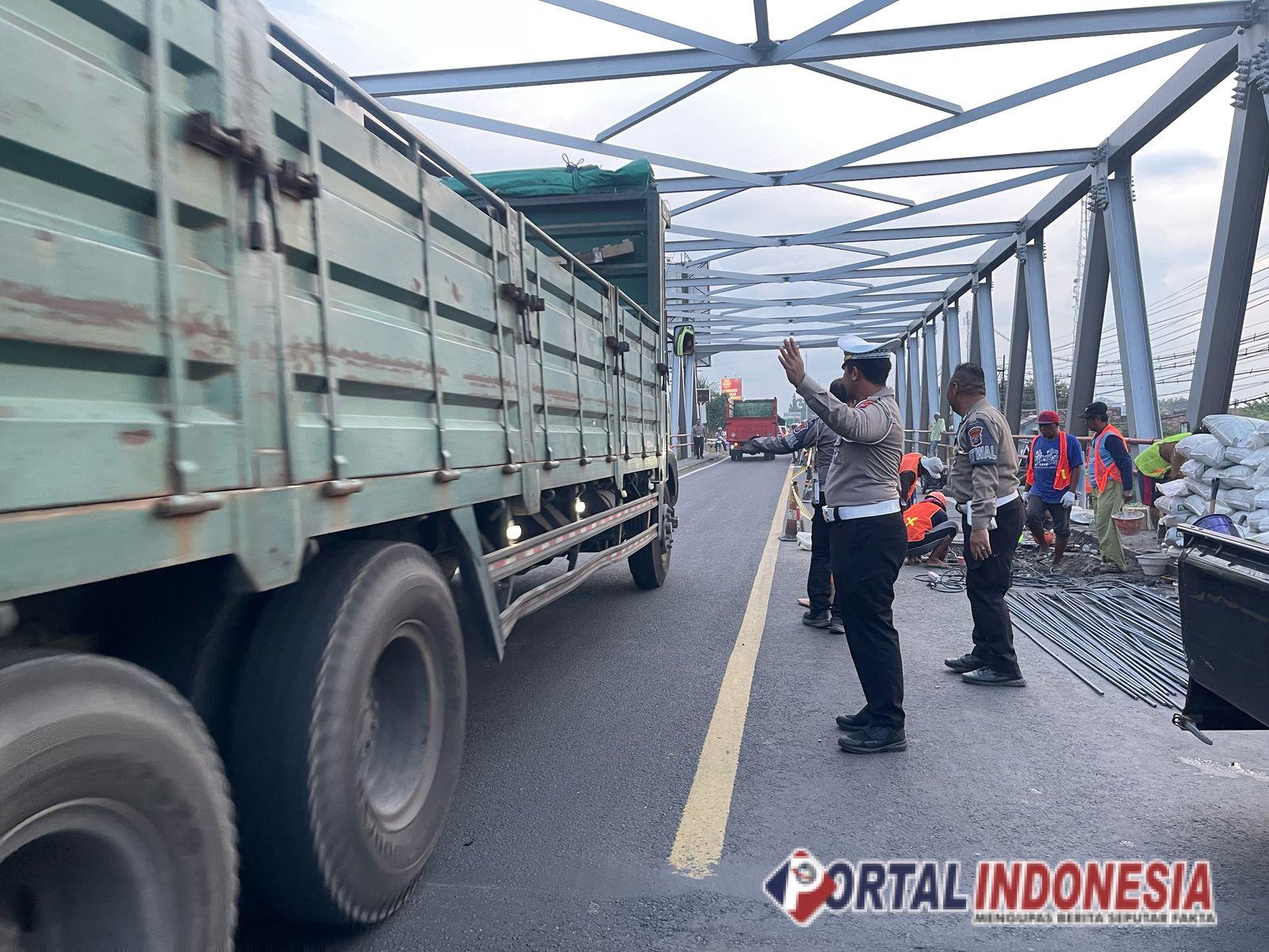 Lubang di Jembatan Pajarakan Timbulkan Kemacetan, Polres Probolinggo Siagakan Personel dan Jalur Alternatif
