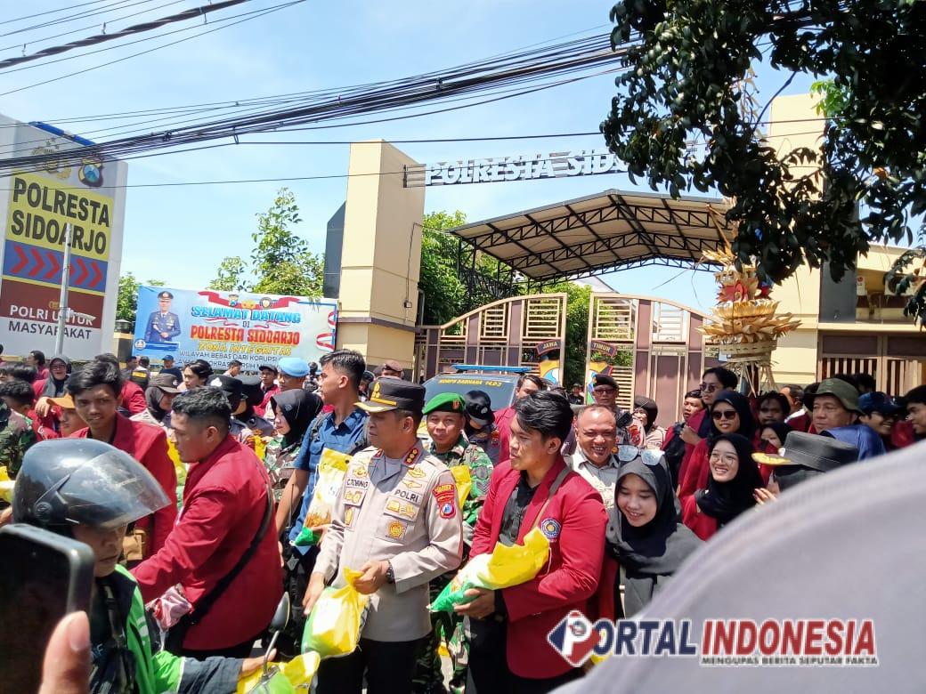 Puluhan mahasiswa diterima secara humanis oleh Kapolresta Sidoarjo Kombes Pol Christian Tobing bersama jajaran. Turut hadir pula Bupati Sidoarjo Subandi, Wakil Bupati Mimik Idayana, serta Dandim 0816 Letkol Inf Dedyk Wahyu Widodo.