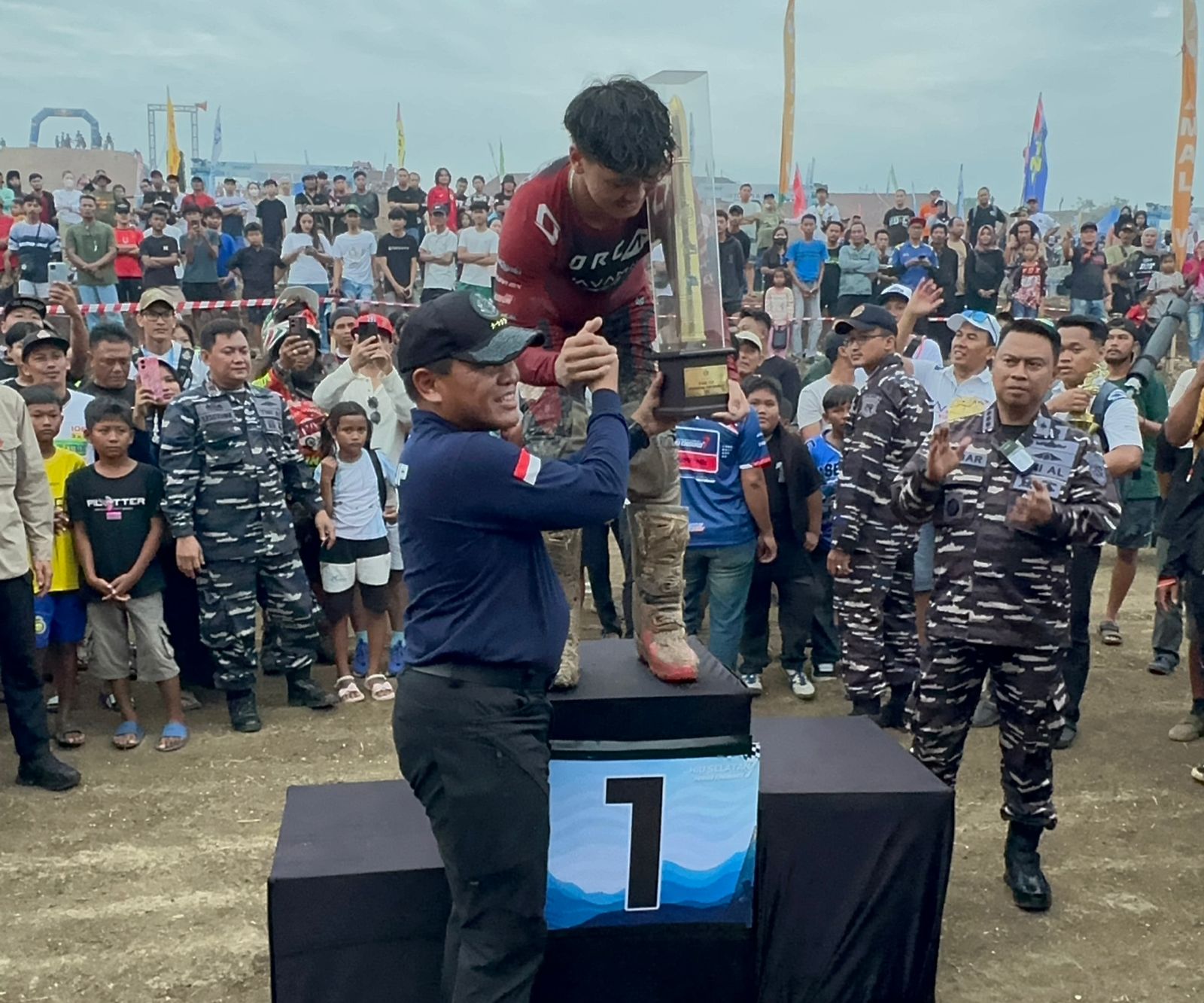 Kepala Staf Angkatan Laut (Kasal) Laksamana TNI Dr. Muhammad Ali secara langsung menyerahkan Piala Kasal Cup kepada para pemenang Kejuaraan Hiu Selatan Internasional Hard Enduro Ke-7 salah satunya pemuda asli asal Kendal yaitu Farel Huda Hanafi.