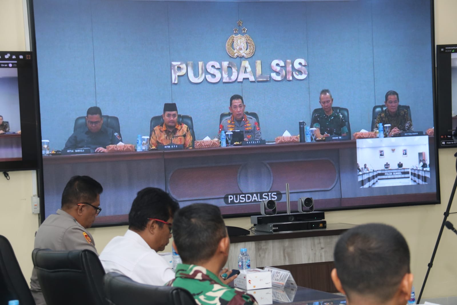 Dalam arahannya Kapolri Jenderal Polisi Drs. Listyo Sigit Prabowo, Kasum TNI Letjen Richard Tampubolon, Ketua KPU RI Mochammad Afifuddin, Ketua Bawaslu RI Rahmat Bagja, dan Ketua DKPP RI Heddy Lugito melakukan video conference (vicon) persiapan Pilkada Serentak 2024.