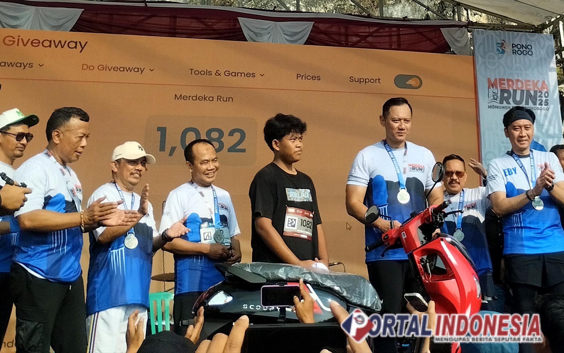 Tak kalah hebohnya, Merdeka Run 2025 ini juga dihadiri Menteri Koordinator Bidang Infrastruktur dan Pembangunan Kewilayahan, Agus Harimurti Yudhoyono (AHY) dan adiknya anggota DPR RI, Edhie Baskoro Yudhoyono (EBY) didampingi Bupati Ponorogo Sugiri Sancoko dan jajarannya.