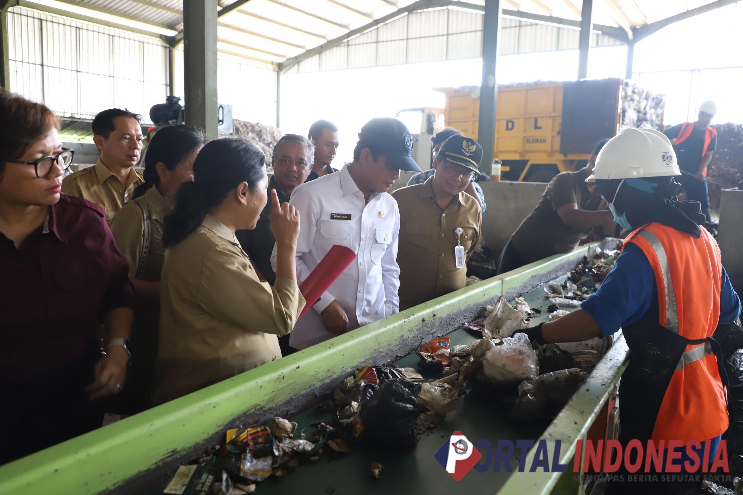 MenLH Hanif Faisol Nurofiq (baju putih) meninjau pengelolaan sampah di TPST Sendangsari, kapanewon Minggir, kabupaten Sleman (Brd/Portal Indonesia)