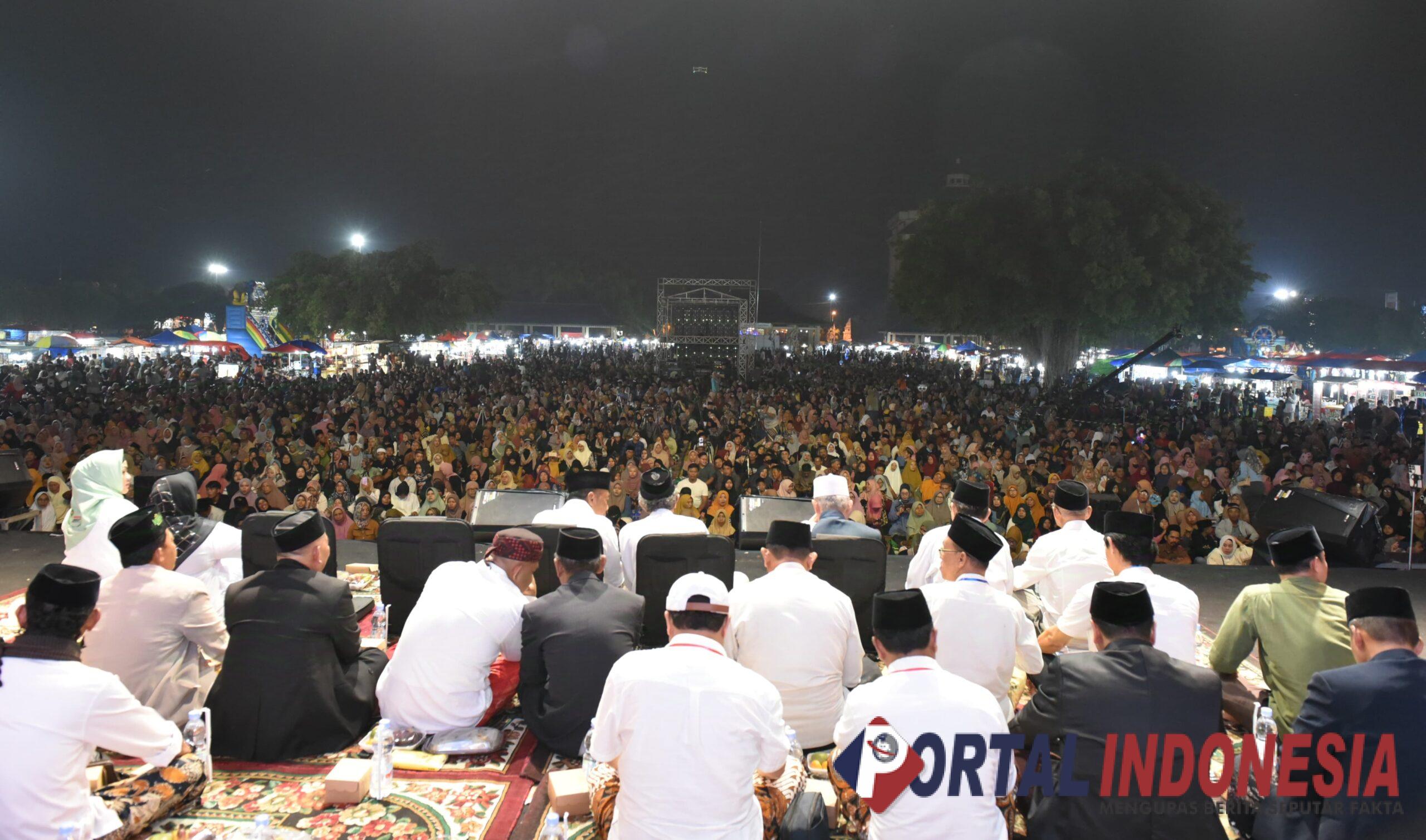 Serta Istighosah dan pengajian akbar bersama Gus Kautsar. Nampak, ribuan masyarakat ‘tumplek blek’ membanjiri alun-alun Ponorogo. (23/11/2024).