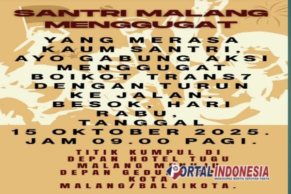 KOTA MALANG – Pasca beredarnya video yang berisi sekelompok santri yang berjalan jongkok (Ngesot) untuk bersalaman dengan seorang Kiai dan ada narasi “Santrinya Minum Susu Aja Kudu Jongkok, Emang Gini Kehidupan Pondok?” yang ditayangkan disalah satu stasiun televisi swasta ternama memantik reaksi Santri di Kota Malang untuk Boikot Trans7. Selasa (14/10/2025)