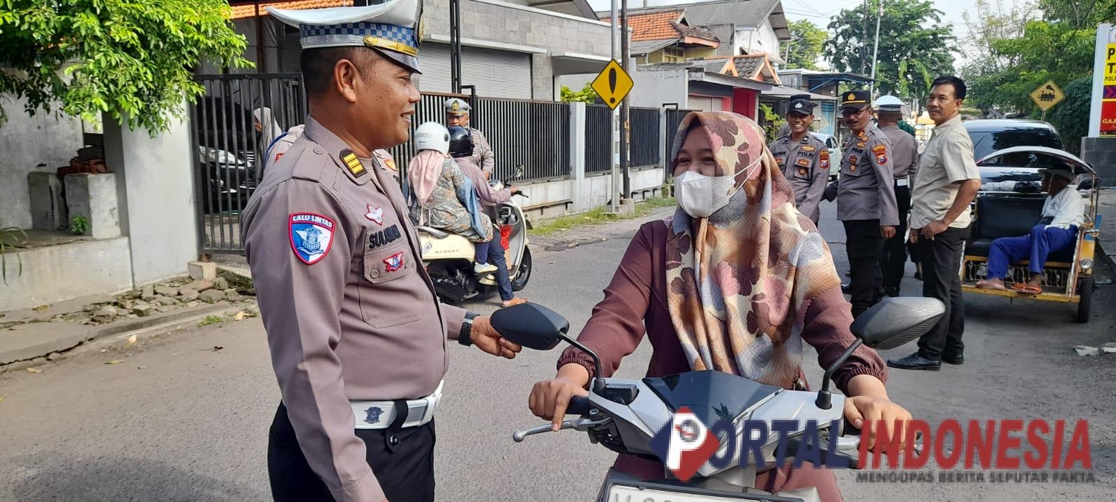 Selain penyuluhan langsung, petugas juga membagikan brosur keselamatan dan memberikan teguran simpatik kepada pengendara yang masih melanggar aturan.