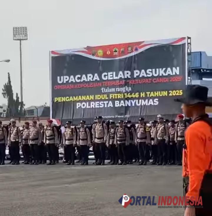 PURWOKERTO – Menjelang Hari Raya Idul Fitri 2025, Polresta Banyumas bersama Pemerintah Kabupaten Banyumas menggelar Upacara Gelar Pasukan Operasi Ketupat Candi 2025 pada Jum’at (21/3/25) .