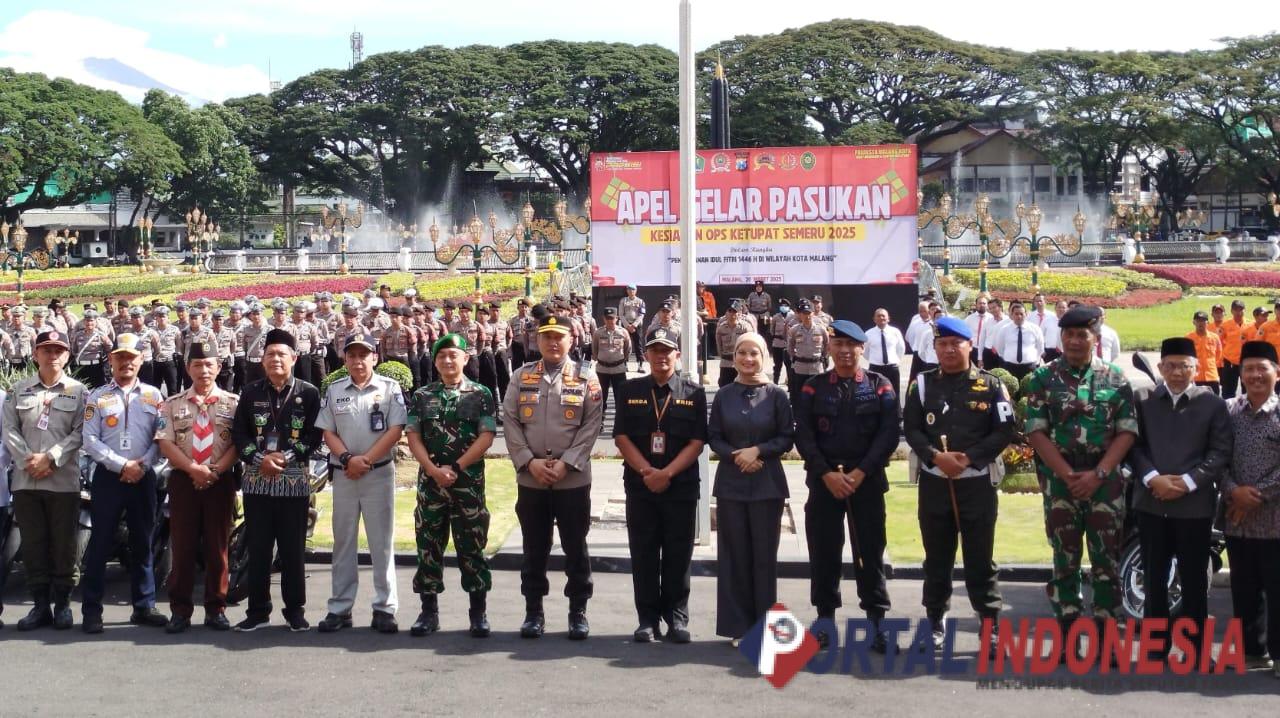 KOTA MALANG – Menjelang Idul Fitri 1466H, Polresta Malang Kota menggelar Apel Gelar Pasukan Ops Ketupat Semeru 2025 di Balai Kota Malang, Kamis (20/03/2025).